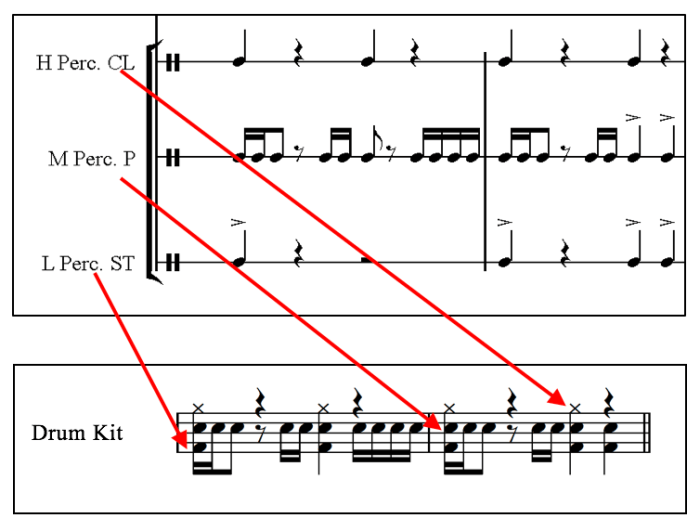 Something I have also realised is that this can be taken 1 step further. In the assignment that I mentioned previously I was required to create a ‘mixed bag’ arrangement for classroom use. I created a selection of percussion parts (3 in total) that could be transferred from ORFF body percussion (ST, P & CL) to classroom instruments (Djembe, Claves, Hand Cymbals/Bells) to then go one step further and ensure all were playable together on a drum kit part with the CL representing the high-hat/cymbals, the P representing the snare and the ST representing the Kick drum. It certainly wasn’t the easiest task in the world to complete but it was certainly worth it and as teachers, going the extra mile for our students is always worth it.