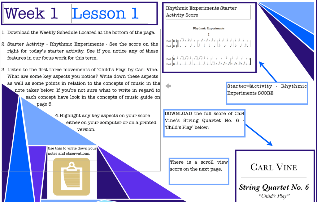 A little bit of an update: I have just completed the resources for week 4 of my unit and my iBook which means that I am over halfway through the resources that I have to create which is fantastic and I am really happy with how hard I have been working on this unit. The resources I have written, compiled and included so far span from classroom arrangements to YouTube recordings, multiple widgets to aid student learning, explanation videos and scores. The most difficult resource to create so far was probably the classroom arrangement of Gnomus from Pictures at an Exhibition by Modest Mussorgsky as the score was quite difficult to read. This piece has been included in this unit for a specific purpose. Mussorgsky similarly to Vine in the focus work for the unit, uses the compositional technique of dovetailing to aid his composition and such Gnomus is included as one of the resources for my teaching of dovetailing to the students.